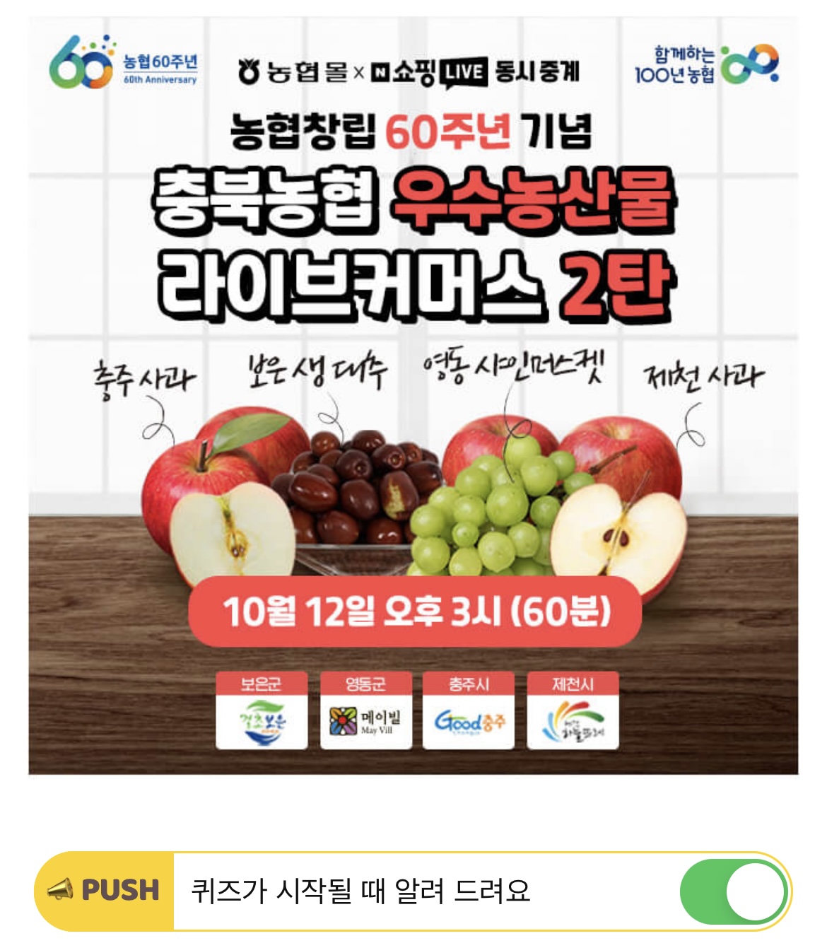충북이 퍼트리는 귀한 향기'라는 의미로, 충청북도와 충북농협이 직접 관리하여 더욱 믿을 수 있는 충청북도 농산물 공동브랜드의 명칭은 무엇일까요?
