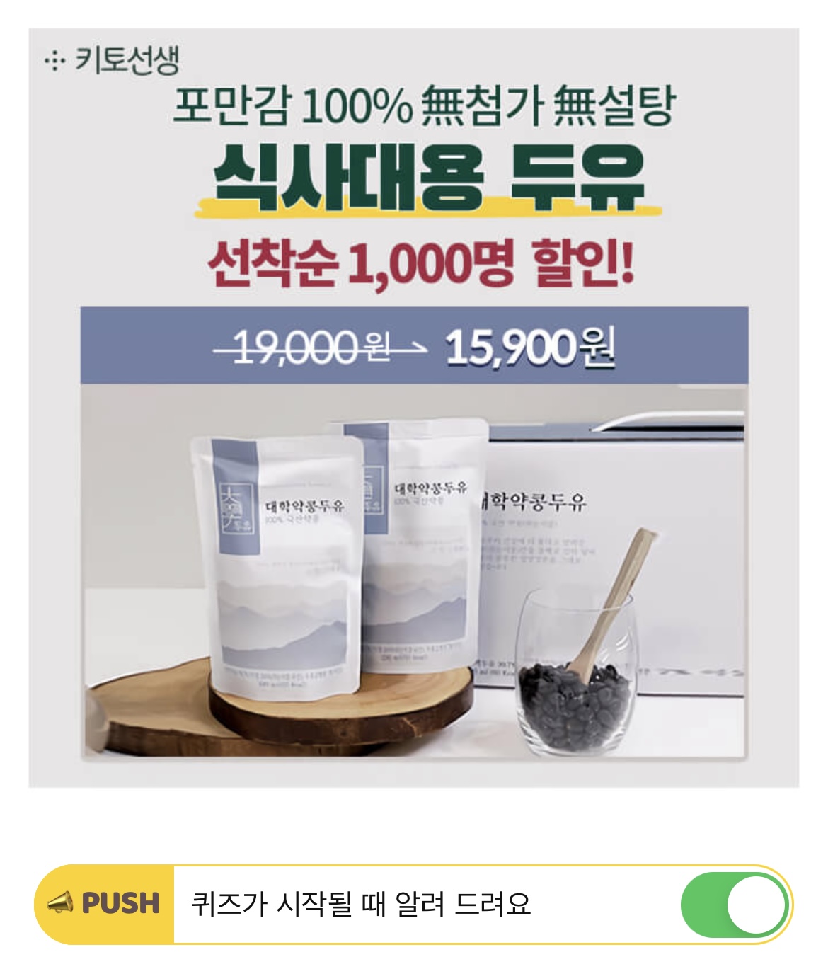 "일반 두유보다 훨씬 담백하고 탈모관리로 매일 한 포씩 마시고 있는데 효과가 조금씩 나타나는 기분입니다." 이 후기는 'OOOO'에 나온 품질 좋은 약콩을 통째로 넣은 대학약콩두유의 후기입니다. OOOO은 무엇일까요?(힌트: ㄷㅇㅂㄱ)