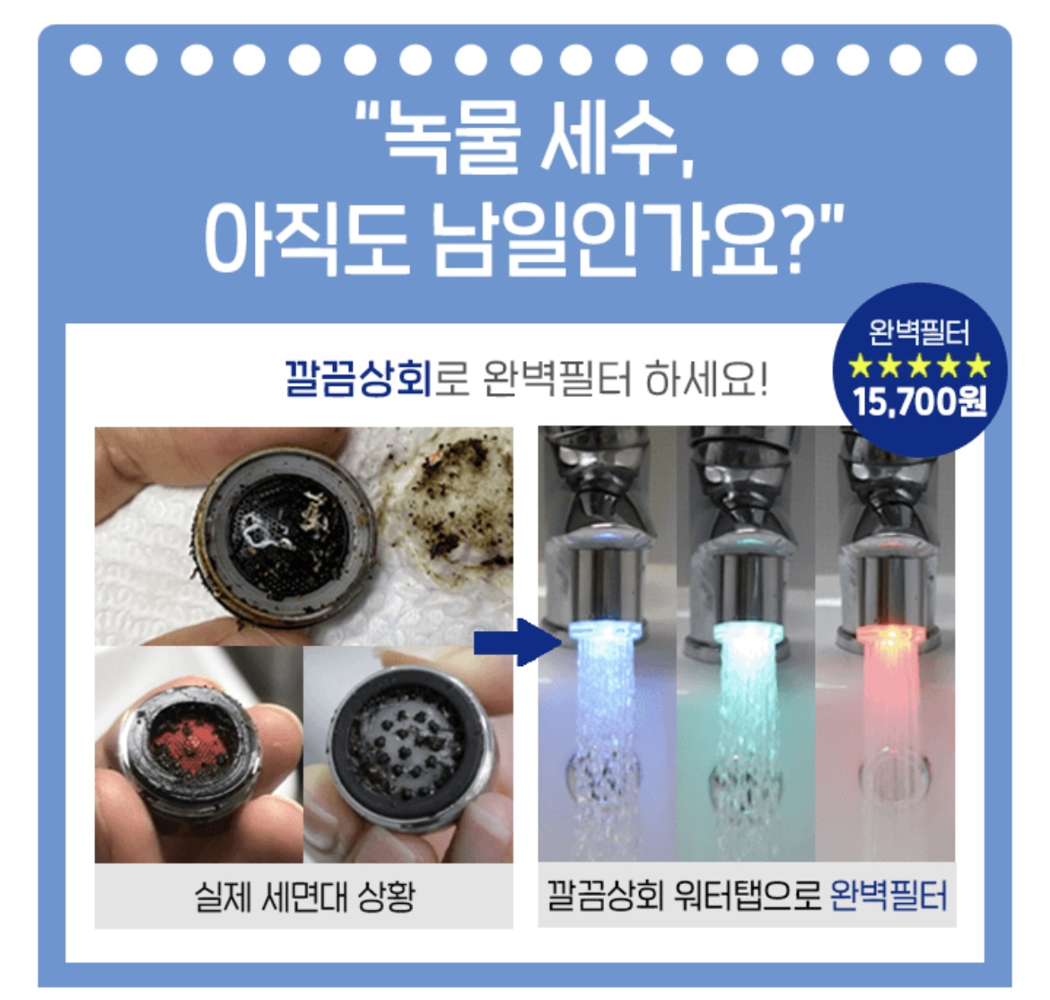 "깔끔상회"로 새롭게 탄생한 깔끔상회 스마트워터탭은 일체형 세면대 혹은 분리 불가능한 수도꼭지에 해당하지 않음에도 불구하고 설치가 어려운 경우, OOOO 없이 100% 무료반품 처리해드립니다. OOOO에 들어갈 말은 무엇일까요? (초성힌트 : ㅎㅅㅂㅇ)