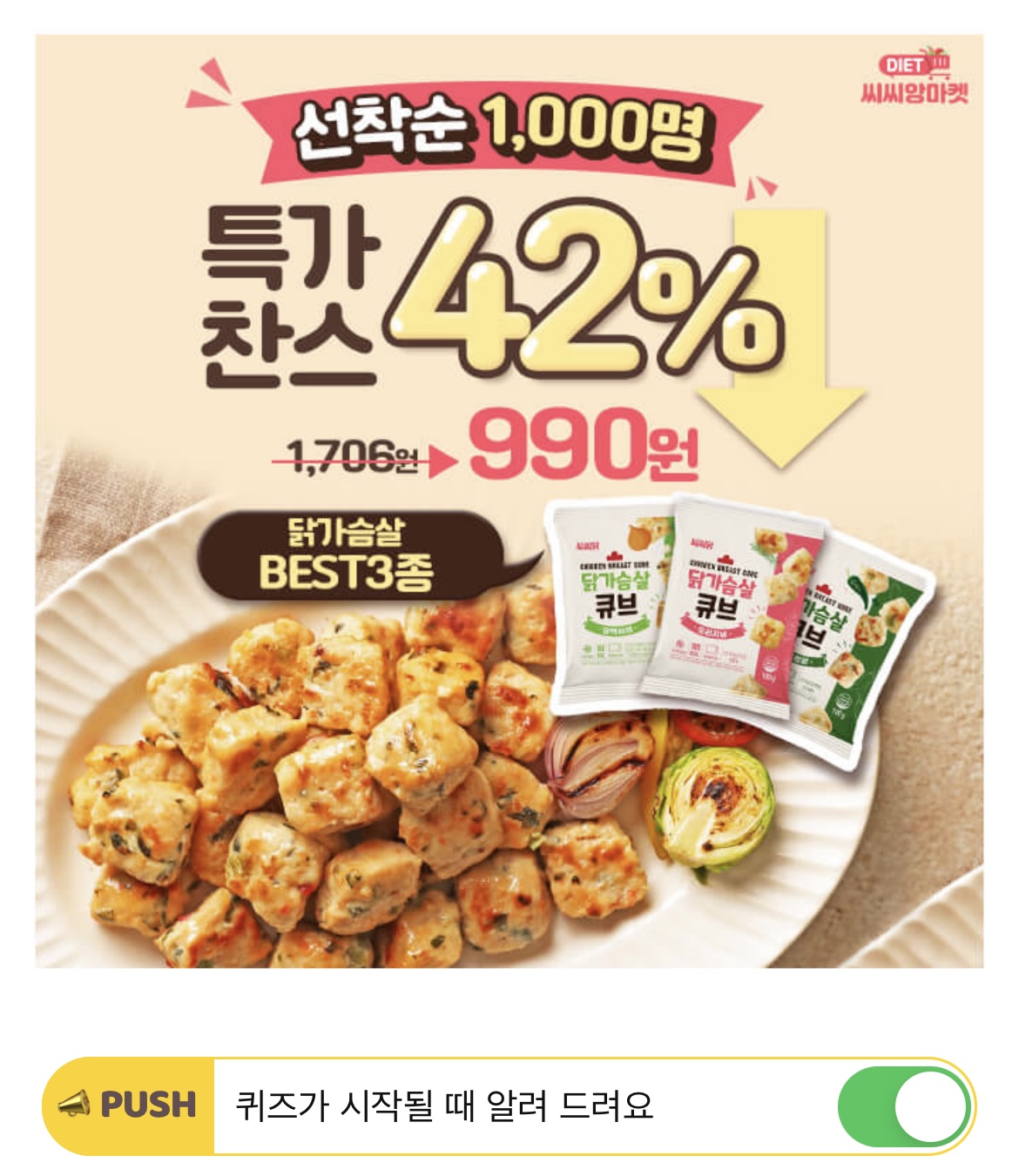 "큐브형이라서 먹기 편하고 쫄깃해요 담백해서 아이들 간식이나 아침대용으로 주고 있어요~" 이 후기는 'OOO' 큐브에 한 입 가득 퍼지는 육즙을 가진 쫄깃하고 부드러운 씨씨닭 후기입니다. OOO은 무엇일까요?(힌트: ㄷㅌㅎ)