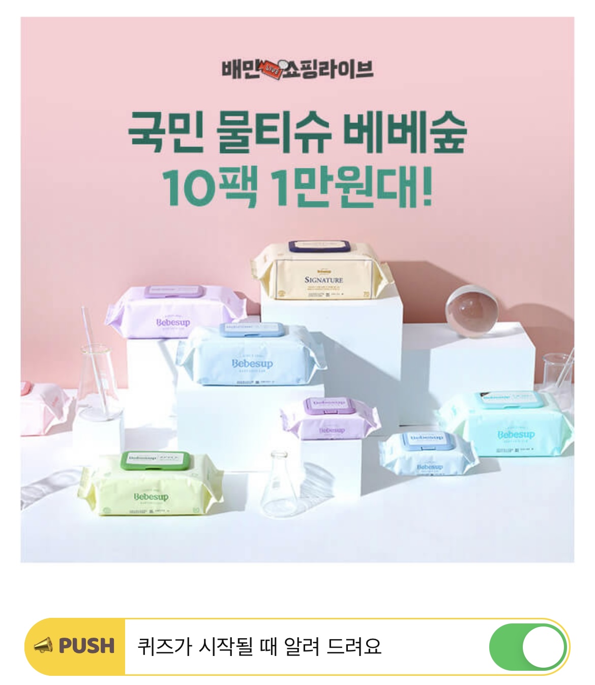 국민 물티슈 베베숲이 배민쇼핑라이브에 찾아왔어요. 1팩 OOO원대로 초특가 할인 방송을 하는데요. OOO원은 얼마일까요?