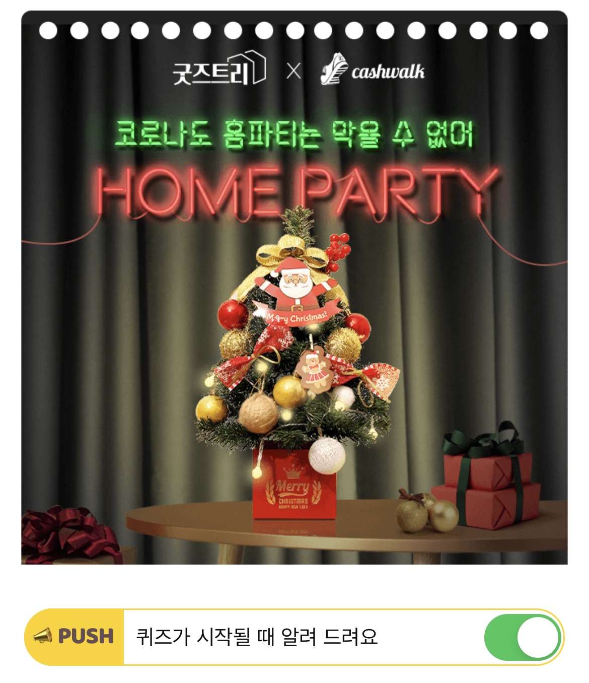 11/25 단 하루! 10년 연속 완판신화 '굿즈트리' 의 크/리/스/마/스 기념 최대할인! 트리+장식+전구가 함께 포함된 굿즈트리 OOOOO를 12,900원 특가 + 구매고객 전원 사은품 증정으로 득템할 수 있는 기회, 놓치치마세요! OOOOO에 들어갈 단어는 무엇일까요?