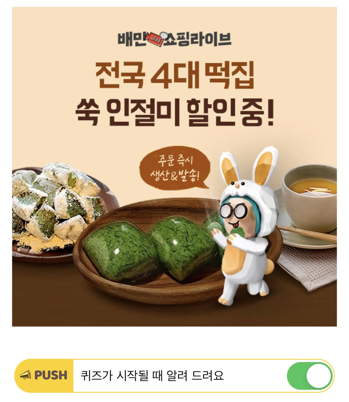 배민쇼핑라이브 쑥인절미