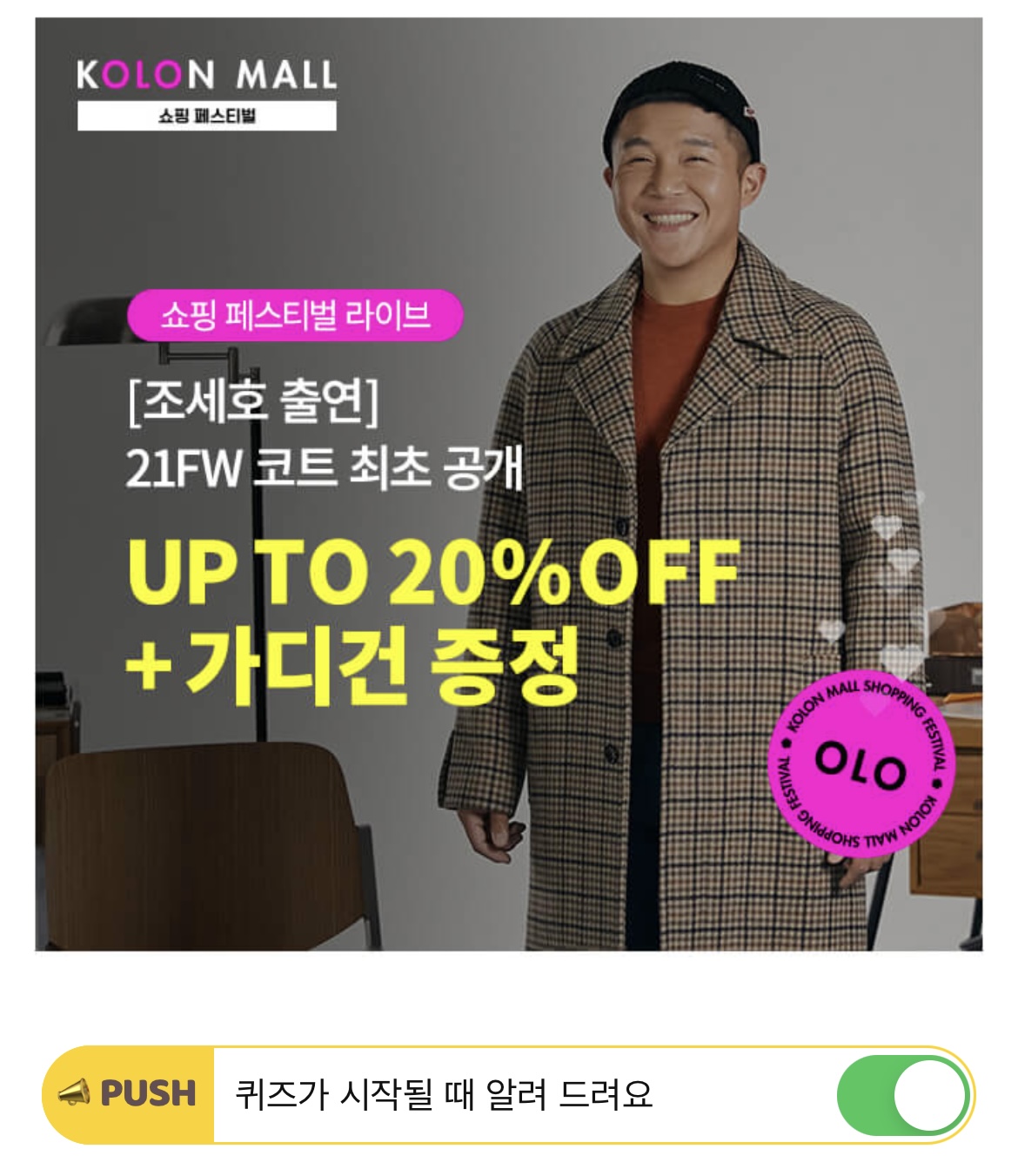 코오롱몰 쇼핑 페스티벌 라이브에서 만나보는 완판신화 데님부터 FW 신상 코트까지!