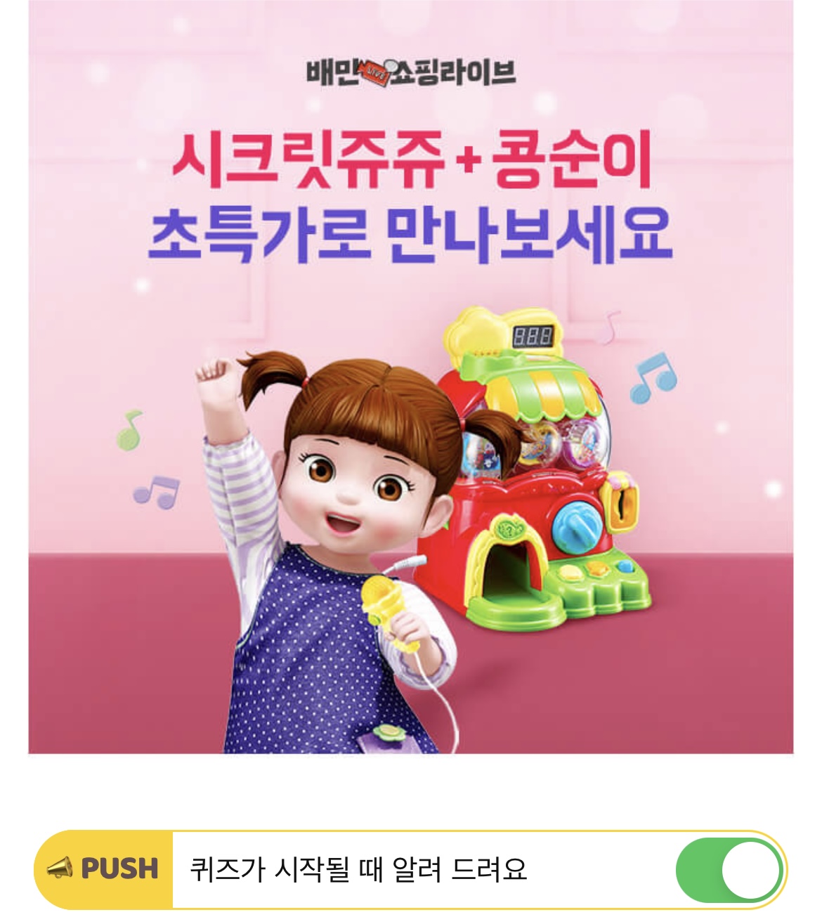 배민쇼핑라이브 시크릿쥬쥬 콩순이