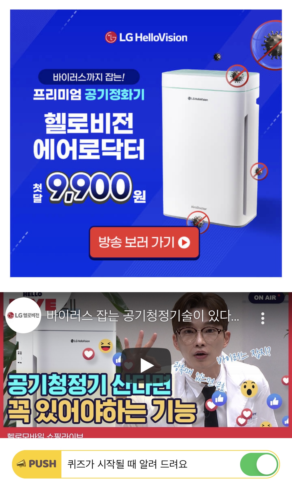 '프리미엄 공기정화기' 헬로비전 에어로닥터는 광촉매 UV LED 모듈로 바이러스를 OO.O% 제거한다. OOO에 들어갈 숫자는 무엇일까요?