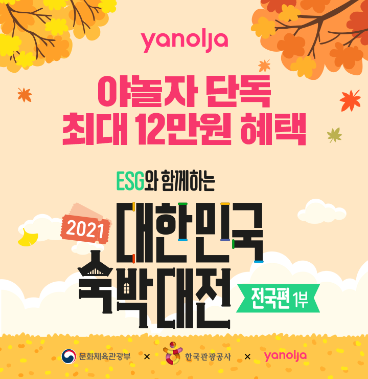 오직 야놀자에서만 무려 12만원 상당 단독 혜택과 100% 추가 당첨 혜택이 동시제공됩니다!