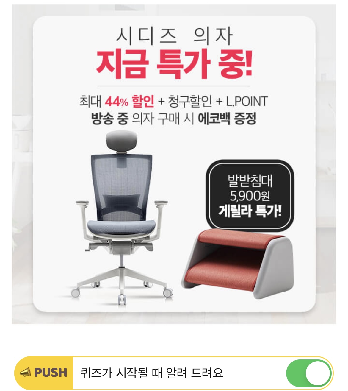 시디즈 하트라이브 방송 시작부터 자정까지 좌판커버 사은품이 증정되는 이 상품 'T500HLDA OO 화이트쉘'은 무엇일까요?
