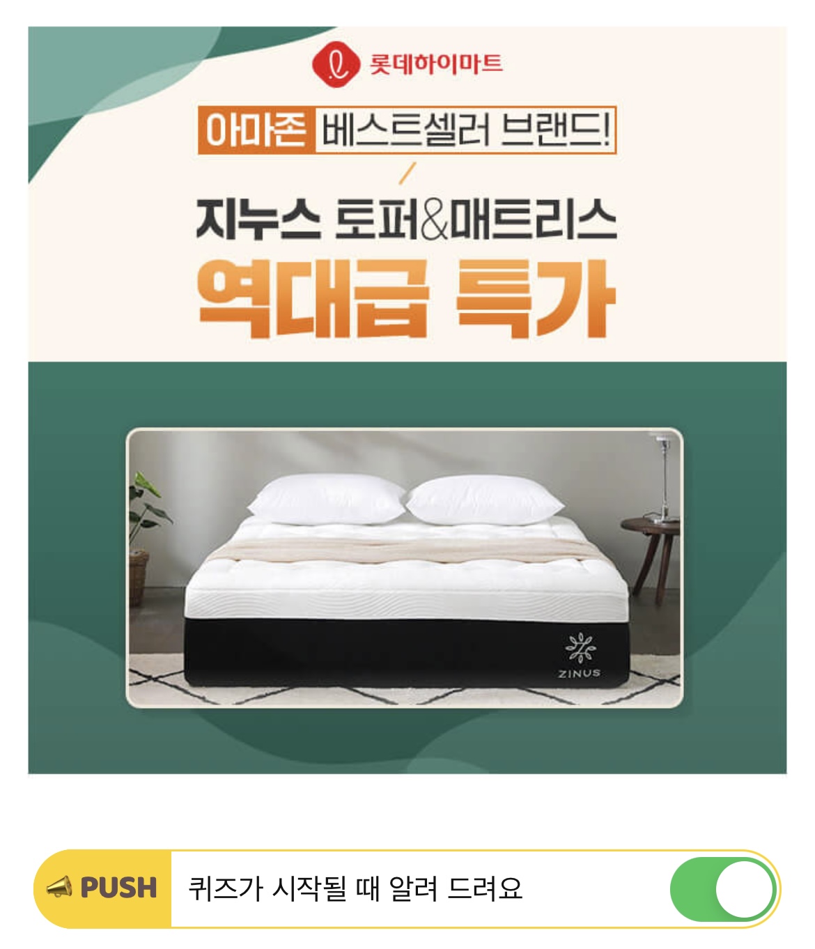 아마존 베스트셀러인 우리나라 브랜드 '지누스'의 OOO 메모리폼 토퍼와 클라우드 플러스 하이브리드 스프링 매트리스를 지금 라이브 특가로 선보이고 있습니다. 방송 중 한정수량에 한해 할인과 추가 청구할인, L.POINT까지 할인혜택을 받을 수 있습니다. 이 OOO에 들어갈 단어는 무엇일까요? (힌트 : ㄱㄹㅌ)
