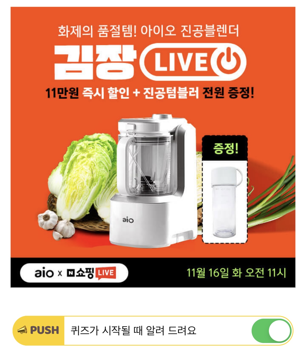아이오 진공블렌더는 최근 유튜브 공동구매에서 10시간만에 930대가OO 되는 상황이 일어났는데요. 여기서 OO에 들어갈 말은 무엇일까요? (초성힌트 : ㅍㅈ)