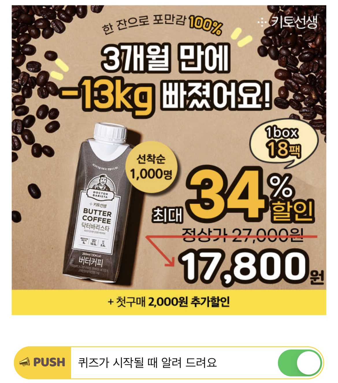 "이거 아침대용으로 먹고 살 5kg 빠져서 재주문합니다. 운동 안하고, 2시~8시 사이에만 식사했는데 빠지네요", "와 이거 너무너무 맛있어요. 완전 OO한데 고급스러워요." 이 내용은 닥터바리스타 버터커피 후기입니다.