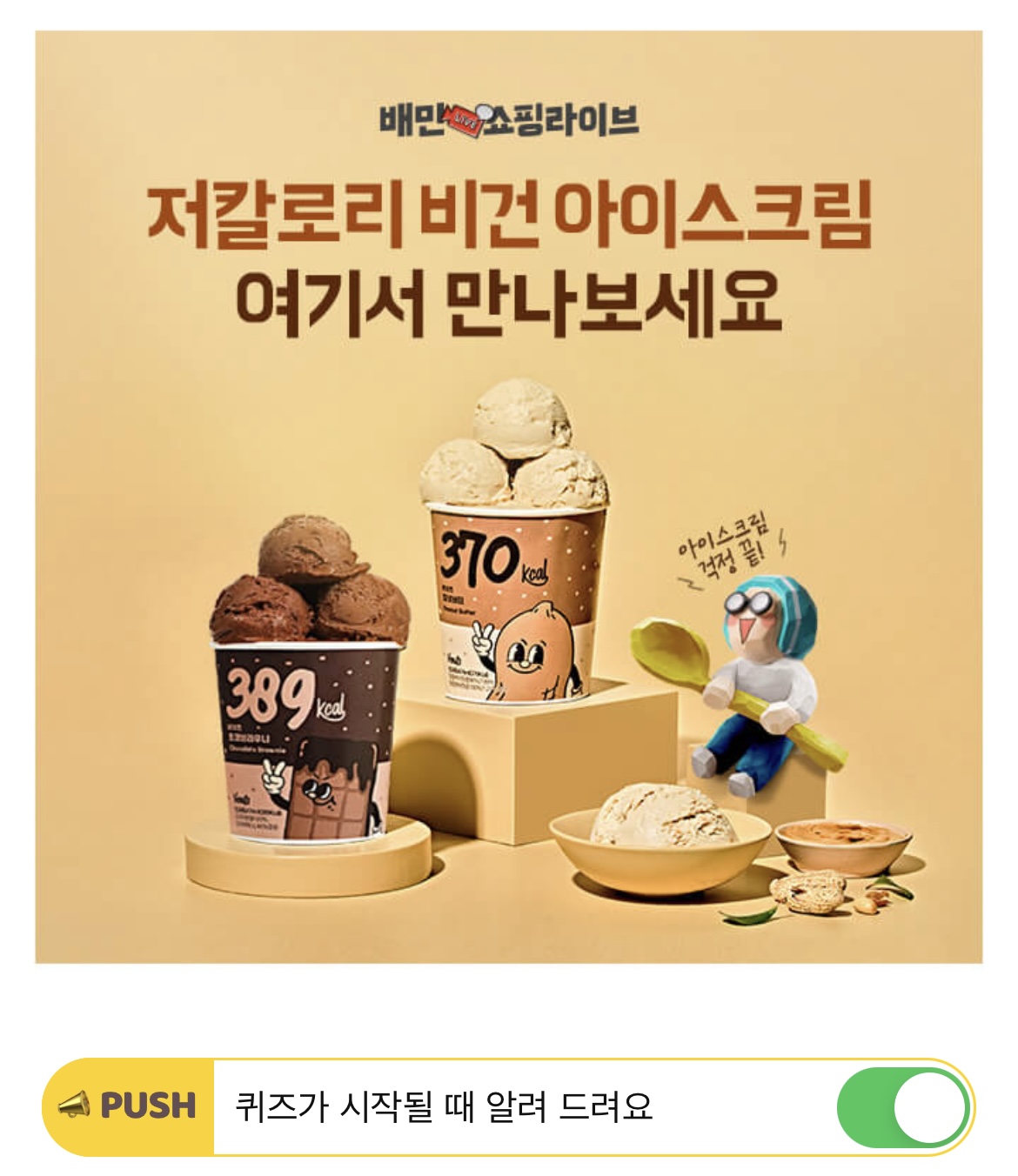 저칼로리에 식물성 지방을 사용한 건강한 OO아이스크림! 건강 걱정을 줄여주는 OO아이스크림 초특가 방송을 진행합니다! 이 아이스크림의 이름은 무엇일까요?