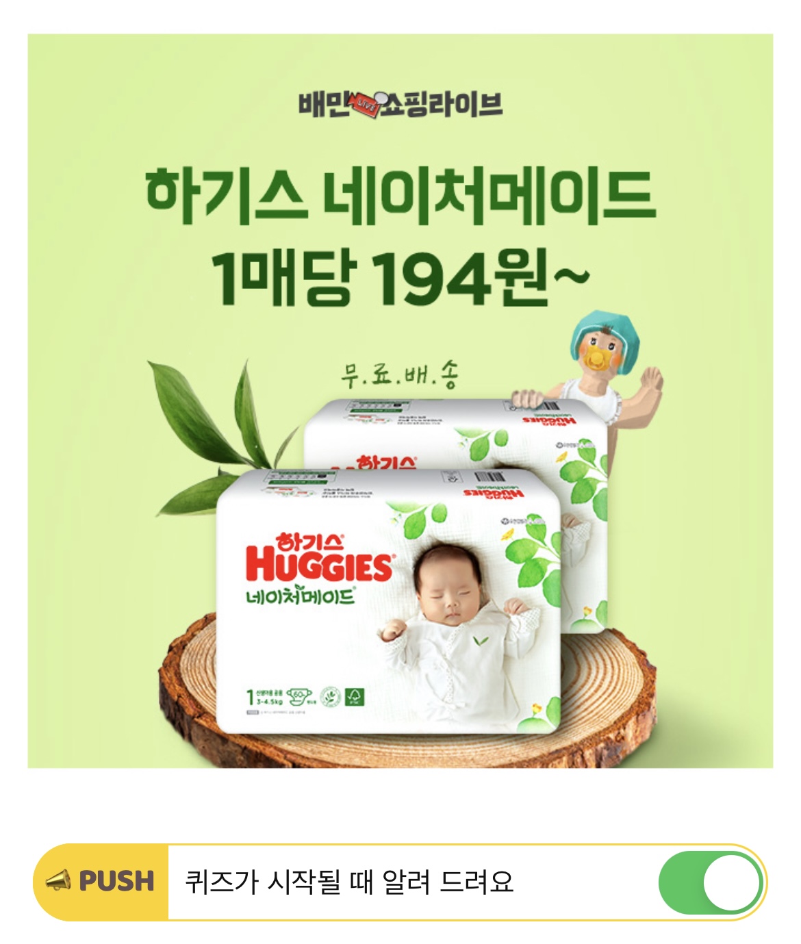 배민쇼핑라이브 하기스 네이처메이드