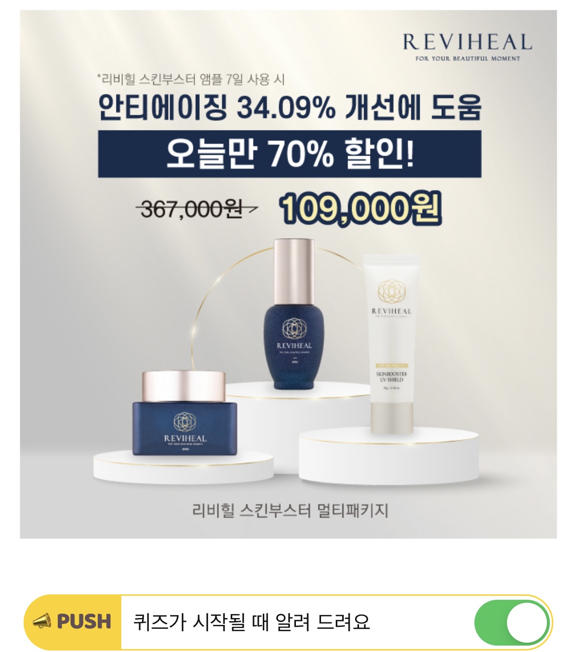 ★오늘만 70%할인★ 리비힐 스킨부스터 앰플은 단, 7일 사용으로 OOOOO 34.09% 개선에 도움을 줍니다. 빈칸에 들어갈 내용은 무엇일까요?(초성힌트 : ㅇㅌㅇㅇㅈ)