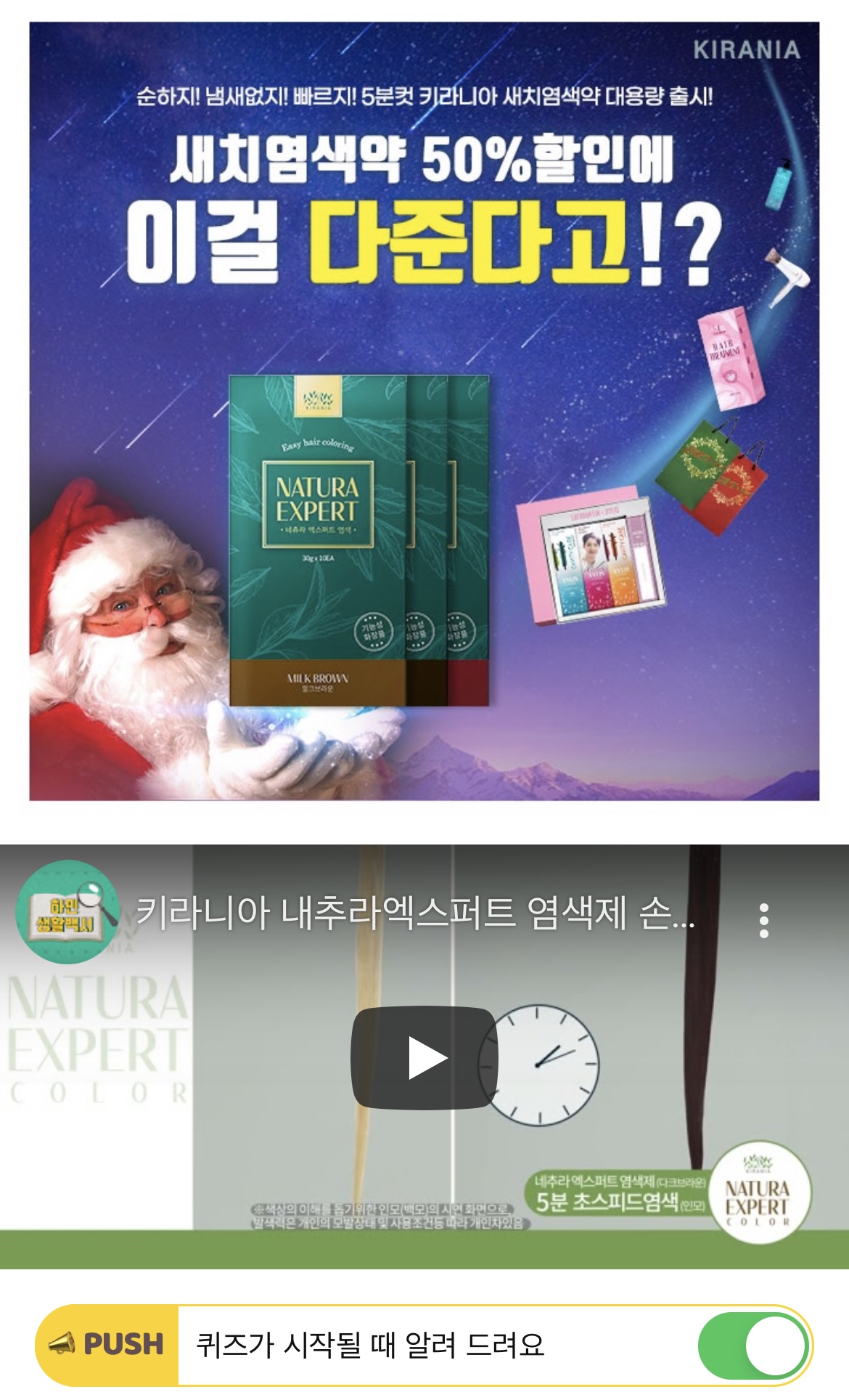 키라니아는 12월을 맞이하여 메리 키라스마스 이벤트를 진행중입니다. 전 구매고객 사은품 증정부터 최대 25% 할인쿠폰까지 많은 이벤트를 진행하고 있는데요. 구매금액대별 이벤트중 7만원 이상 구매고객에게 OOOO OO OOOO를 사은품으로 드리고 있습니다. 빈칸에 들어갈 단어는 무엇일까요? (10자)