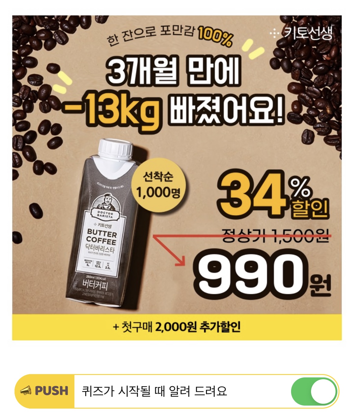 "아침 점심 하루 두잔 마시니 -8kg빠졌어요! 지금까지 마신 방탄커피 중에 제일 맛있는듯" 이 내용은 쇼핑라이브 방송 2회 연속 1,000박스가 매진된 닥터바리스타 후기인데요, 바리스타 자격증을 가진 의사가 9개월 동안 OO했습니다.