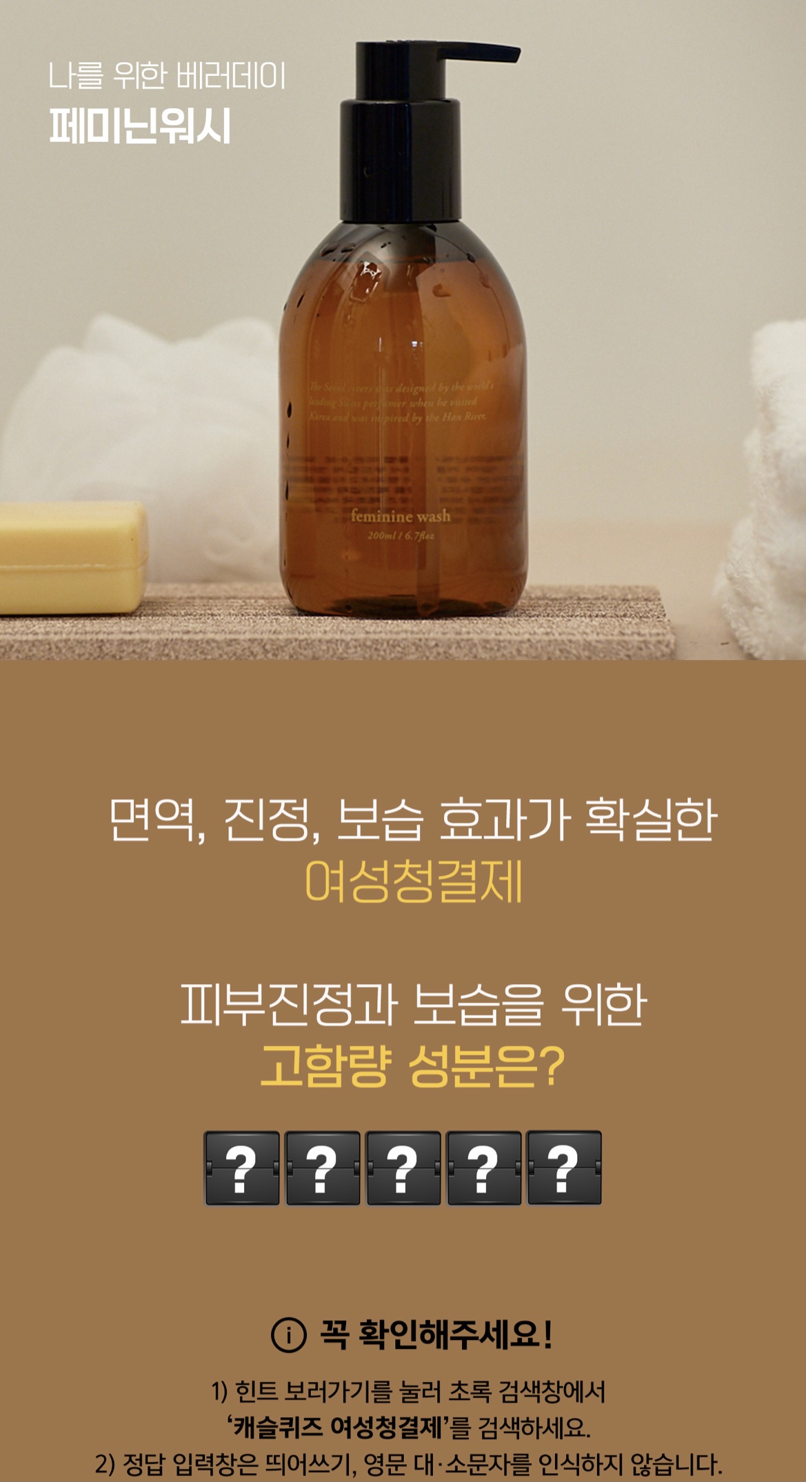 1) 힌트 보러가기를 눌러 초록 검색창에서 ‘캐슬퀴즈 여성청결제’를 검색하세요.