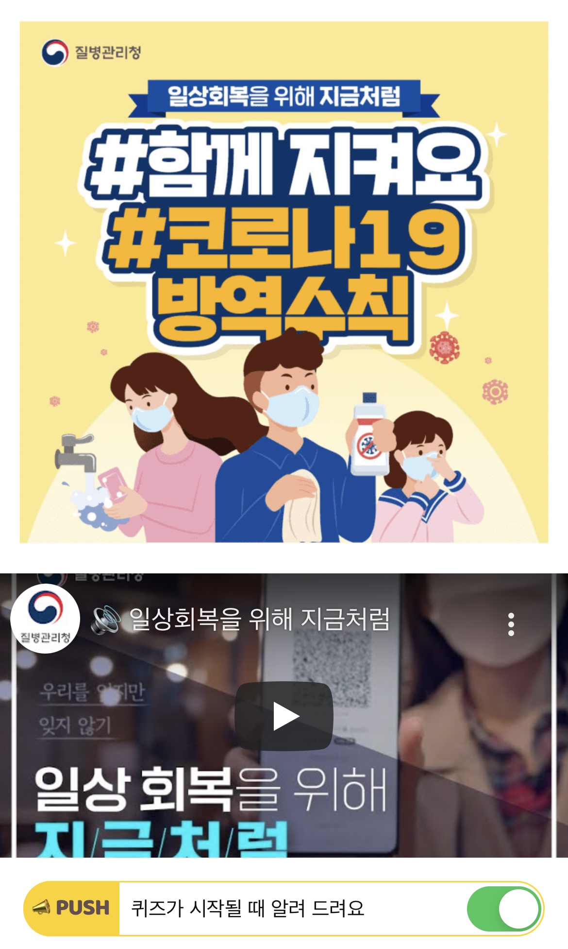 우리 모두를 위해 지금처럼 함께 지켜요, 코로나19 OOOO! 여기서 빈칸에 들어갈 단어는 무엇일까요? (힌트 : ㅂㅇㅅㅊ)
