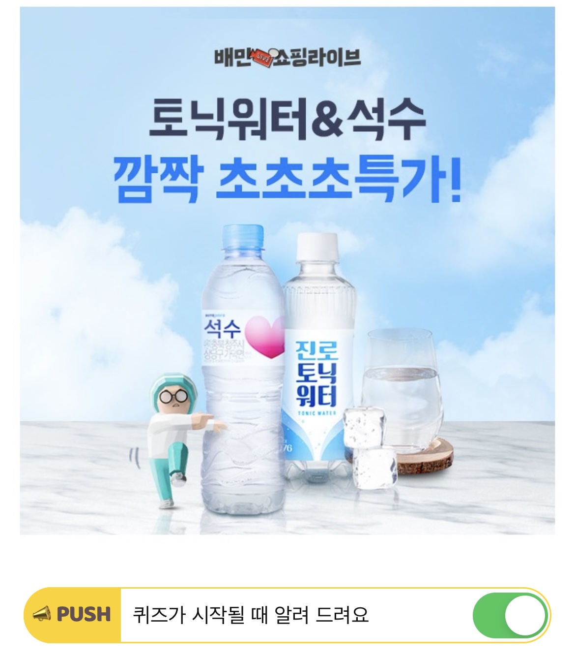 오늘은 홈파티 필수템인 토닉워터와 석수가 최대 OO% 할인! OO에 들어갈 숫자는 무엇일까요?