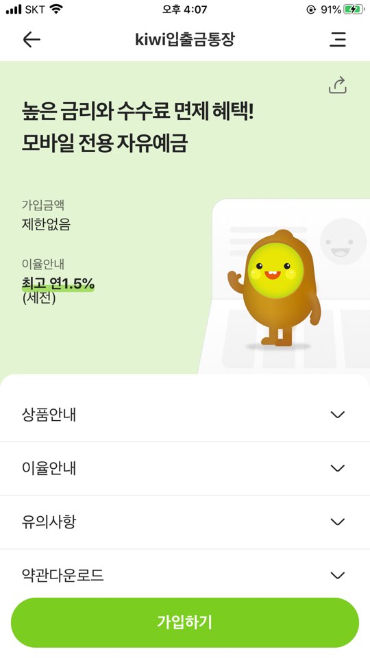 kiwi 앱을 설치하고 통장을 만들려고 했더니 멤버쉽 가입이 되던데,