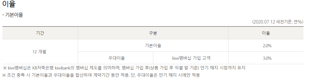 우대금리 : kiwi멤버쉽 가입고객 3%