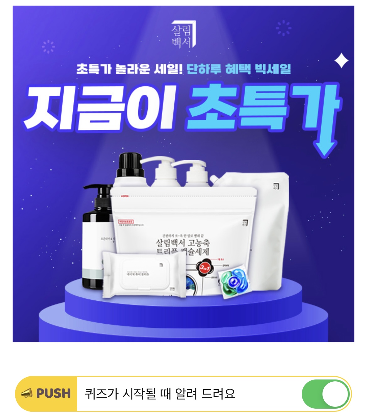 할인이 쏟아지는 살림백서 새해 첫 새해 할인 DAY! 특가찬스와 반값특가, 최대 OO% 할인행사를 진행하고 있는데요. 빈칸에 들어갈 숫자는 무엇일까요?