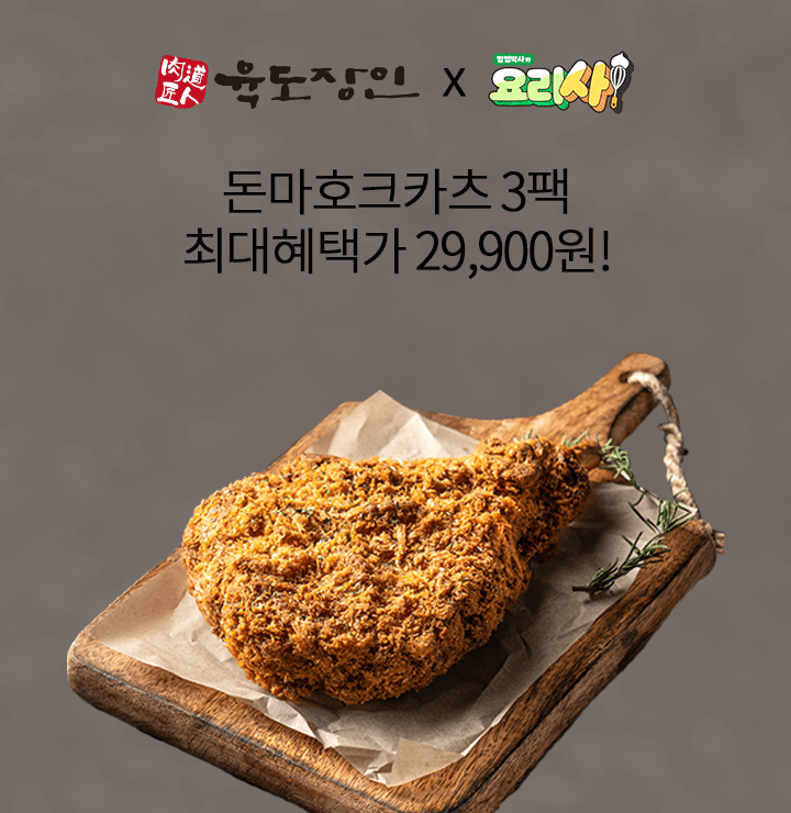 ○와 함께 튀겨 역대급으로 두툼한 고기와 바삭한 튀김옷의 돈마호크카츠 3팩을 29,900원에 만나볼 수 있습니다!