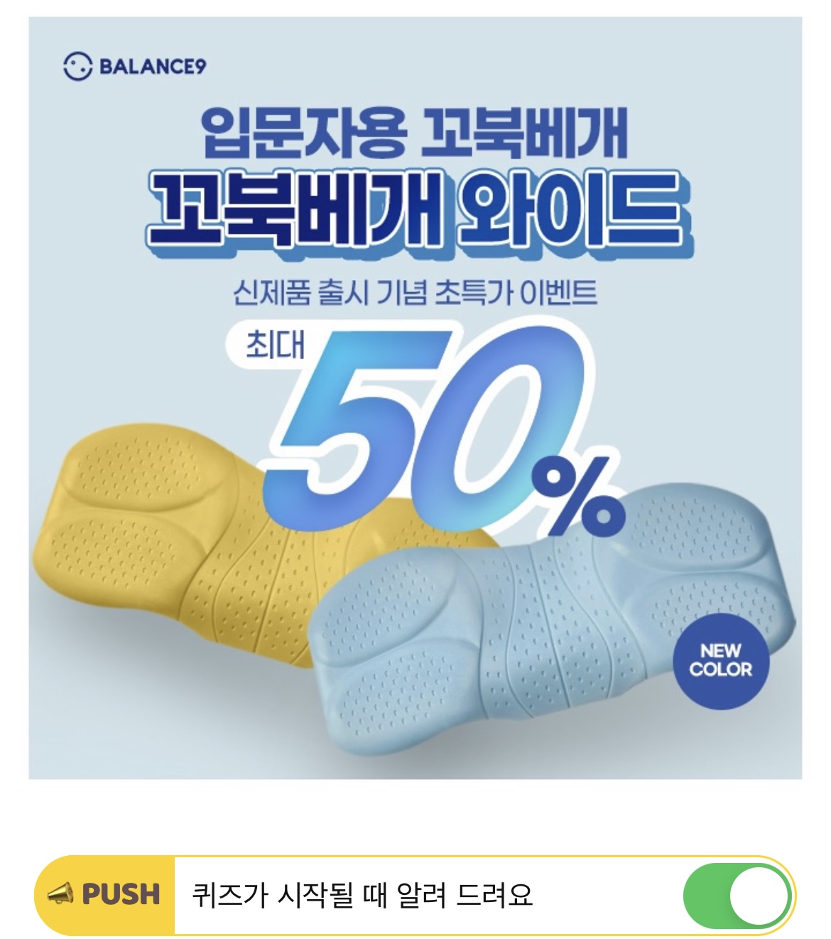 꼬북베개 와이드는 기존 꼬북베개보다 더 푹신하고, 더 넓고, 낮게 설계된 입문자용 OOOO입니다. OOOO에 들어갈 단어는 무엇일까요? (초성힌트 : ㄱㅊㅂㄱ)