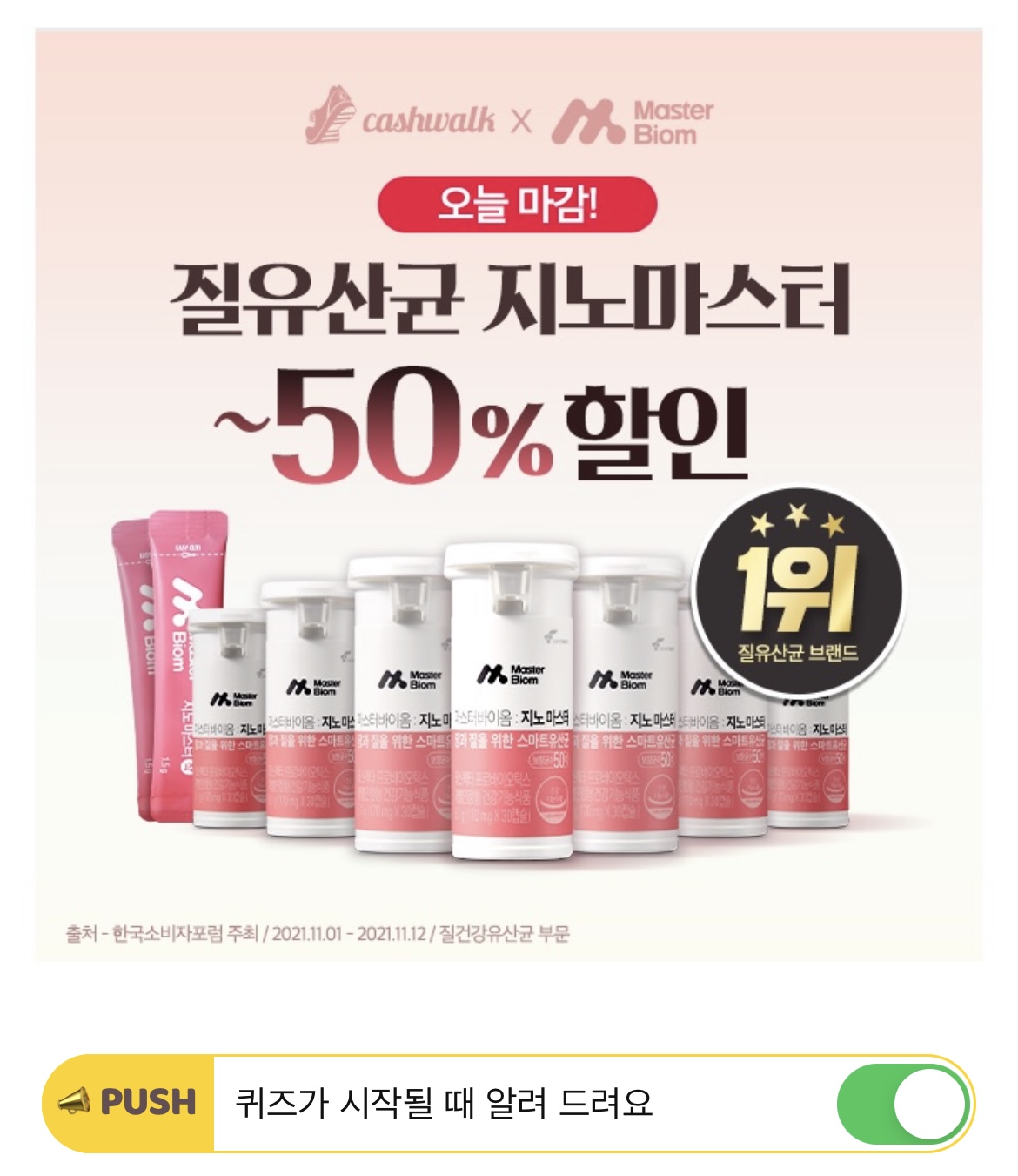 퀴즈풀고 캐시도 같이 적립해봐요.