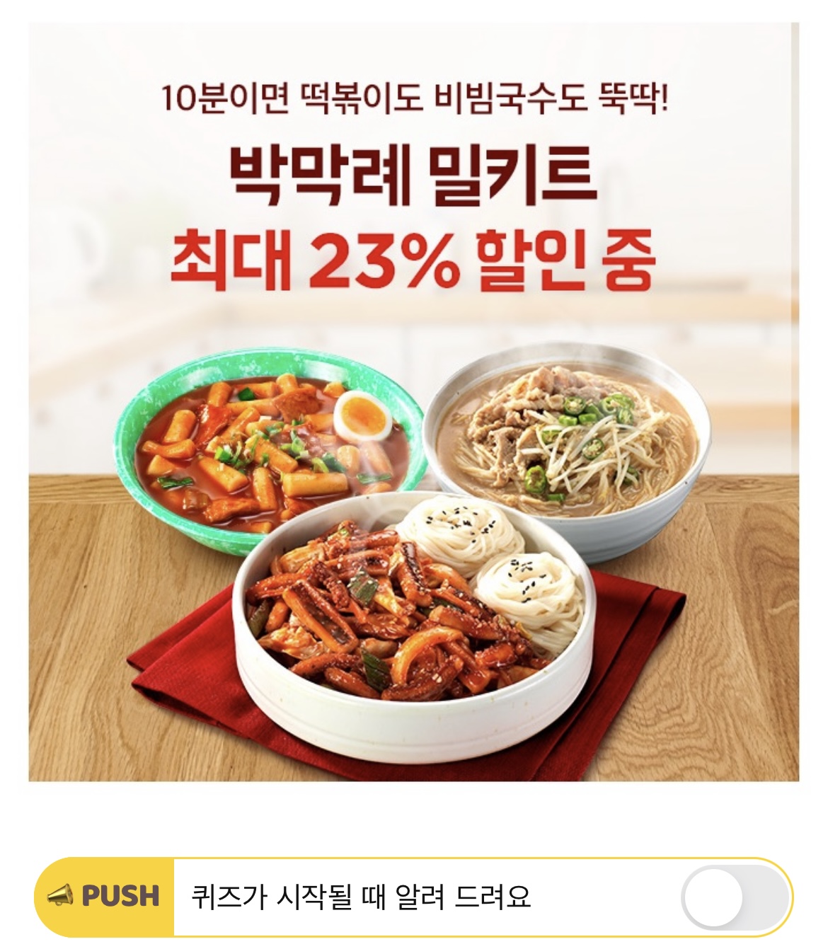 박막례할머니가 만든 떡볶이부터 비빔국수, 차돌 된장국수까지! 인기상품을 모아서 OOO 특별전을 진행합니다! OOO에 들어갈 단어는 무엇일까요?