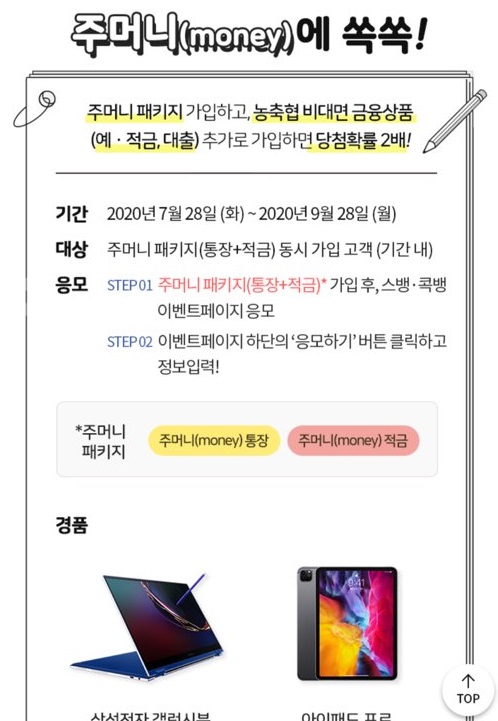 대상 : 주머니 패키지(통장+적금) 동시 가입 고객(기간내)