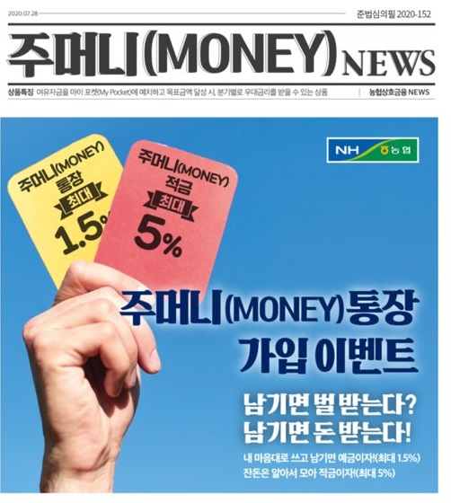 [재테크] 농협상호금융 주머니(money)통장(최대1.5%), 주머니(money) 적금(최대5%)