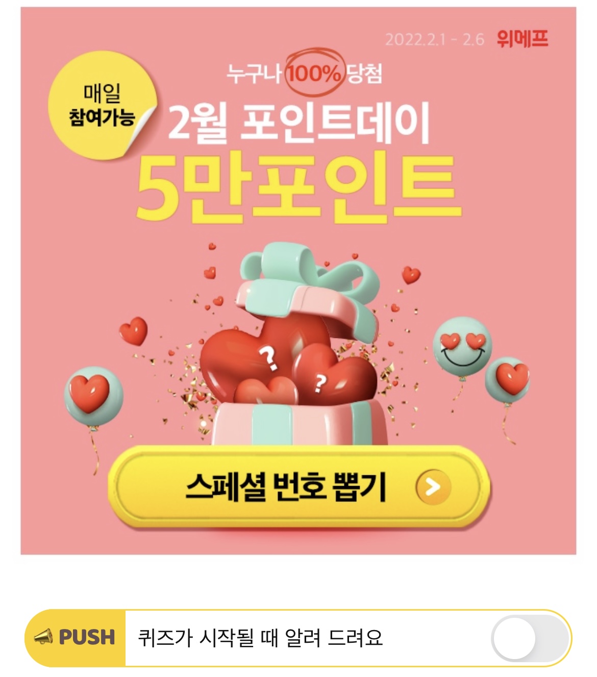 2월 포인트데이! 스페셜 번호를 뽑으면 5만포인트를 즉시 지급해드립니다. 총 20개의 스페셜 번호중 가장 마지막 번호는 OOOOO입니다. OOOOO에 들어갈 숫자는 무엇일까요?