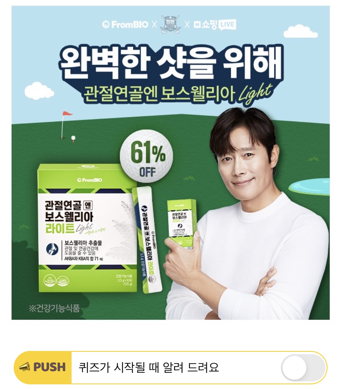 좋은 스윙의 기본은 자세죠? 완벽한 샷을 위해, OOOOO 관절연골엔 보스웰리아 라이트 1일 1포. 관절 및 연골 건강에 도움을 줄 수 있는 보스웰리아 추출물 100%를 1포로 섭취하세요. 레몬&애플민트맛은 덤!