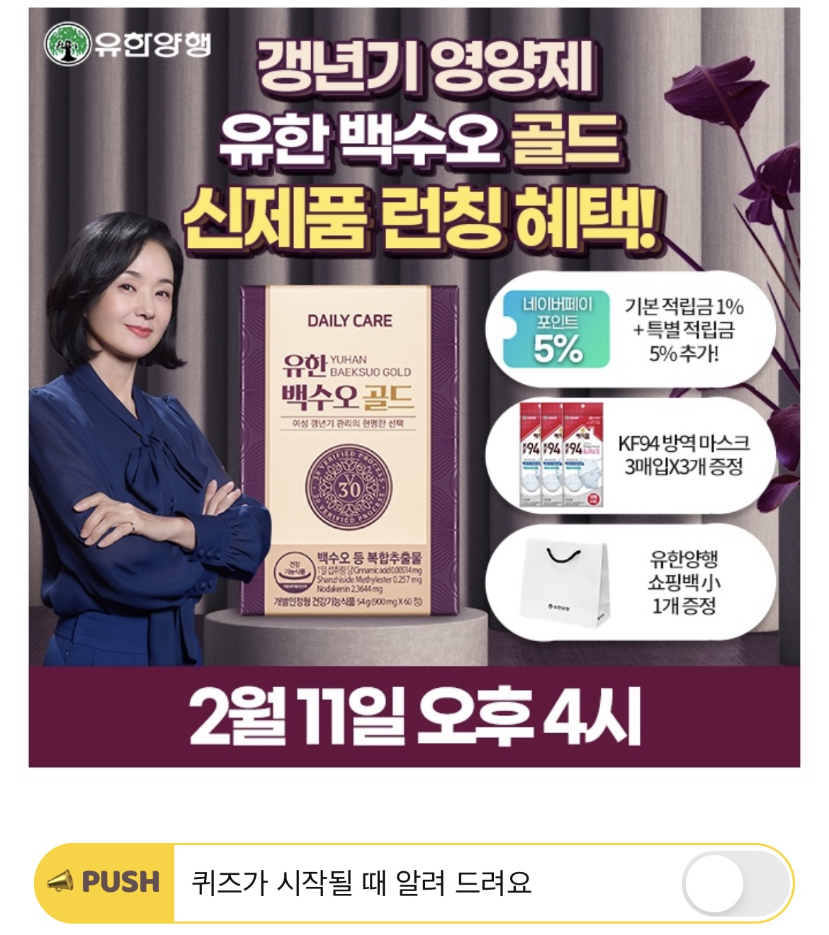 유한 백수오 골드는 OO OO을 섭취하면 여성 갱년기에 도움이 됩니다. 여기서 OOOO는 들어갈 단어는 무엇일까요?