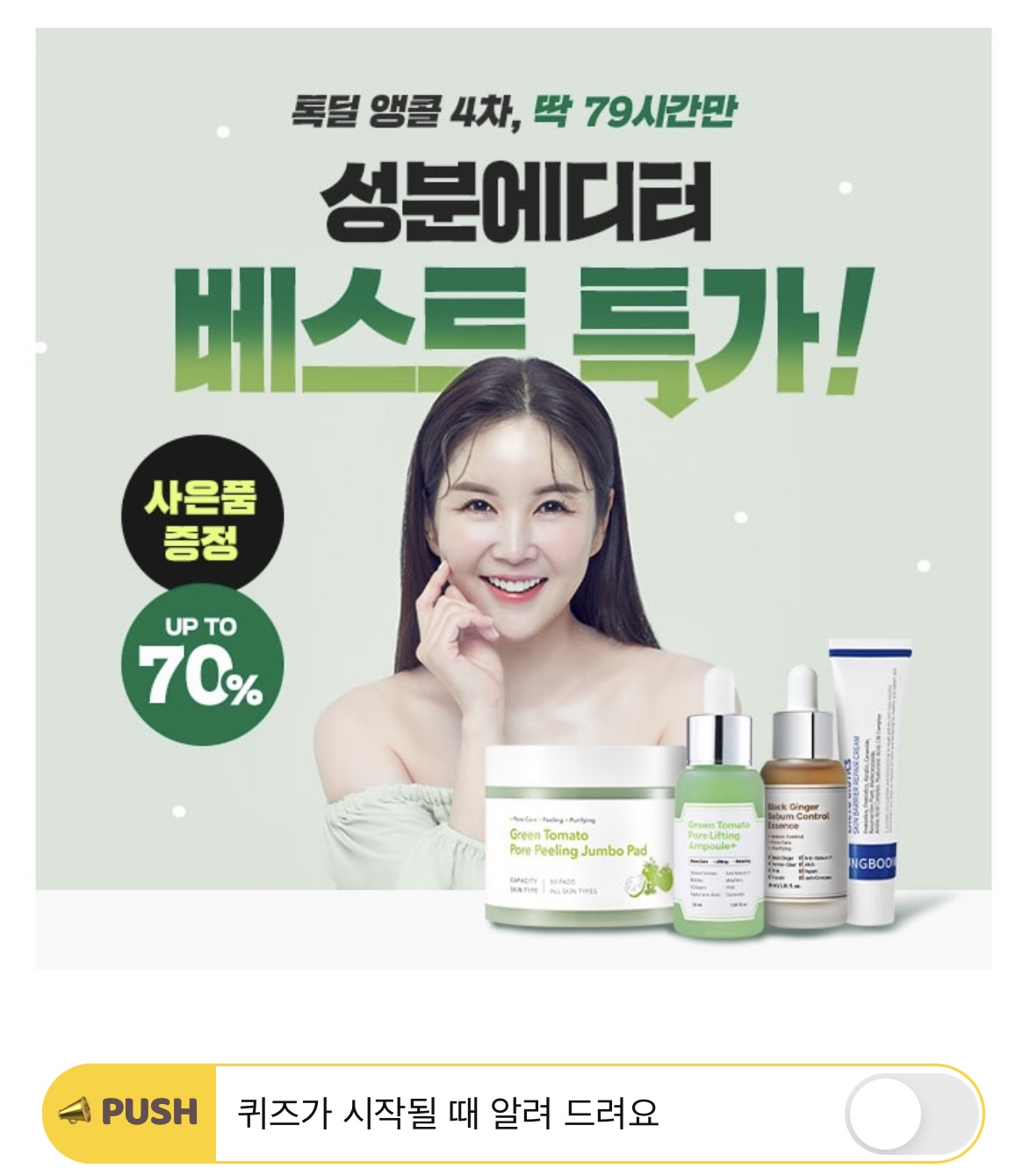성분에디터 그린토마토 모공패드는 사용 후 모공부피, 밀도, 개수, 면적, 깊이, 결이 모두 개선되고 모공 채움 효과까지 있는 제품인데요. 단 1회 사용으로도 7종 OOOO 증명이 완료된 제품입니다. OOOO에 들어갈 단어는 무엇일까요? (힌트 : ㅁㄱㅅㄹ)