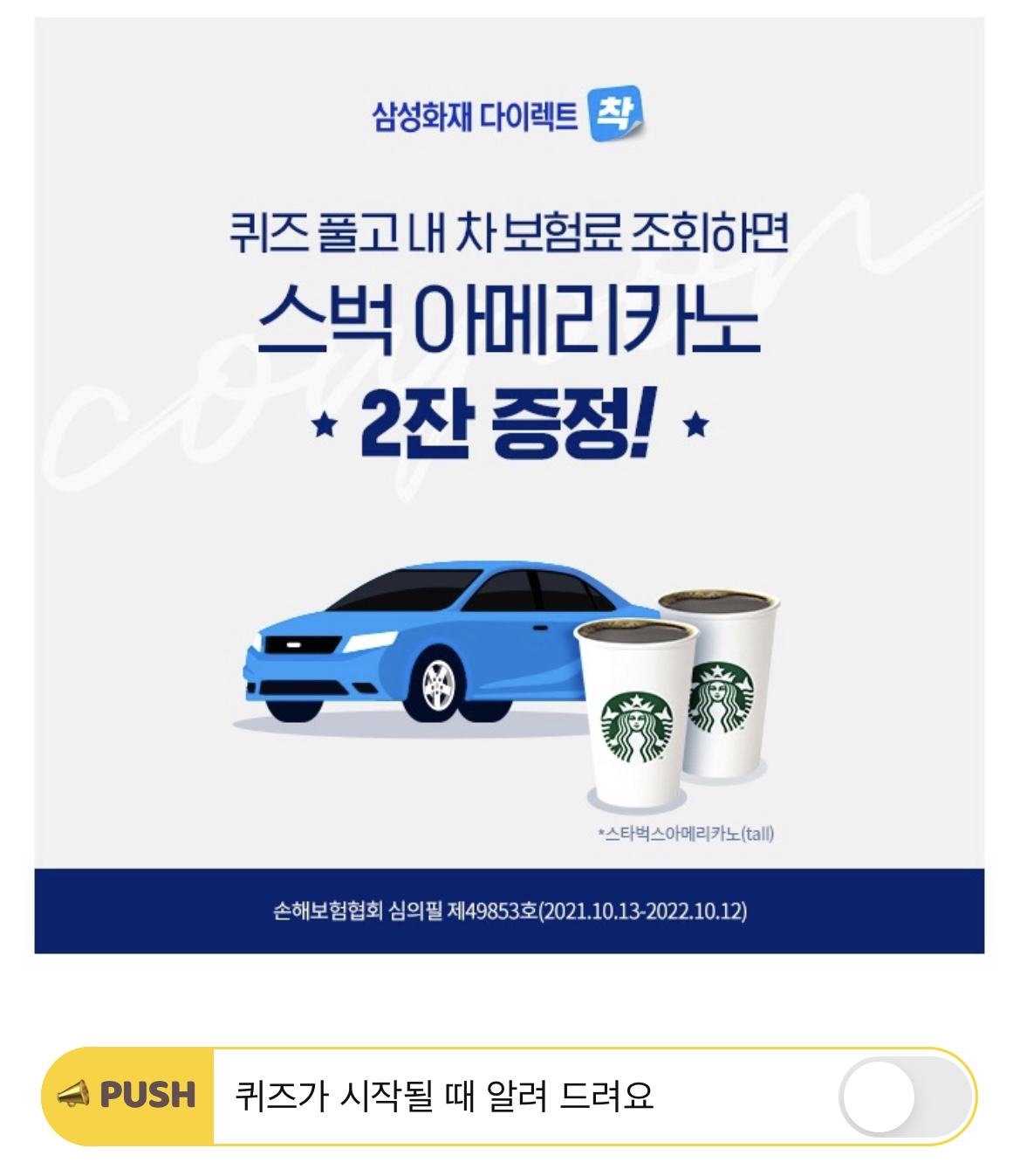 삼성화재 다이렉트 자동차보험은 보험료를 계산해 보셔도 OO로 가입을 권유하지 않아요 (Hint. ㅈㅎ)