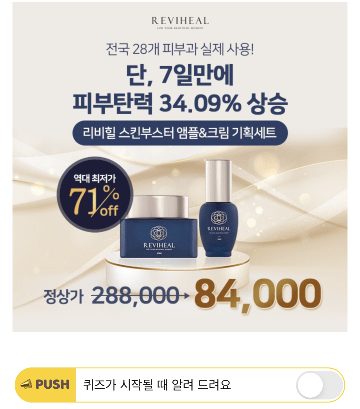 ★오늘만 71% 할인★ 전국 28개 피부과에서 실제로 사용하는 제품인 리비힐 스킨부스터 앰플&크림 기획세트는 리프팅 특화 펩타이드인 네오OOO을 함유하고 있어 사용 7일 후 팔자, 눈밑, 이중턱 등 주름 고민 부위의 리프팅에 도움을 줄 수 있습니다. 빈칸에 들어갈 단어는 무엇일까요? (힌트 : ㅇㄷㅍ)