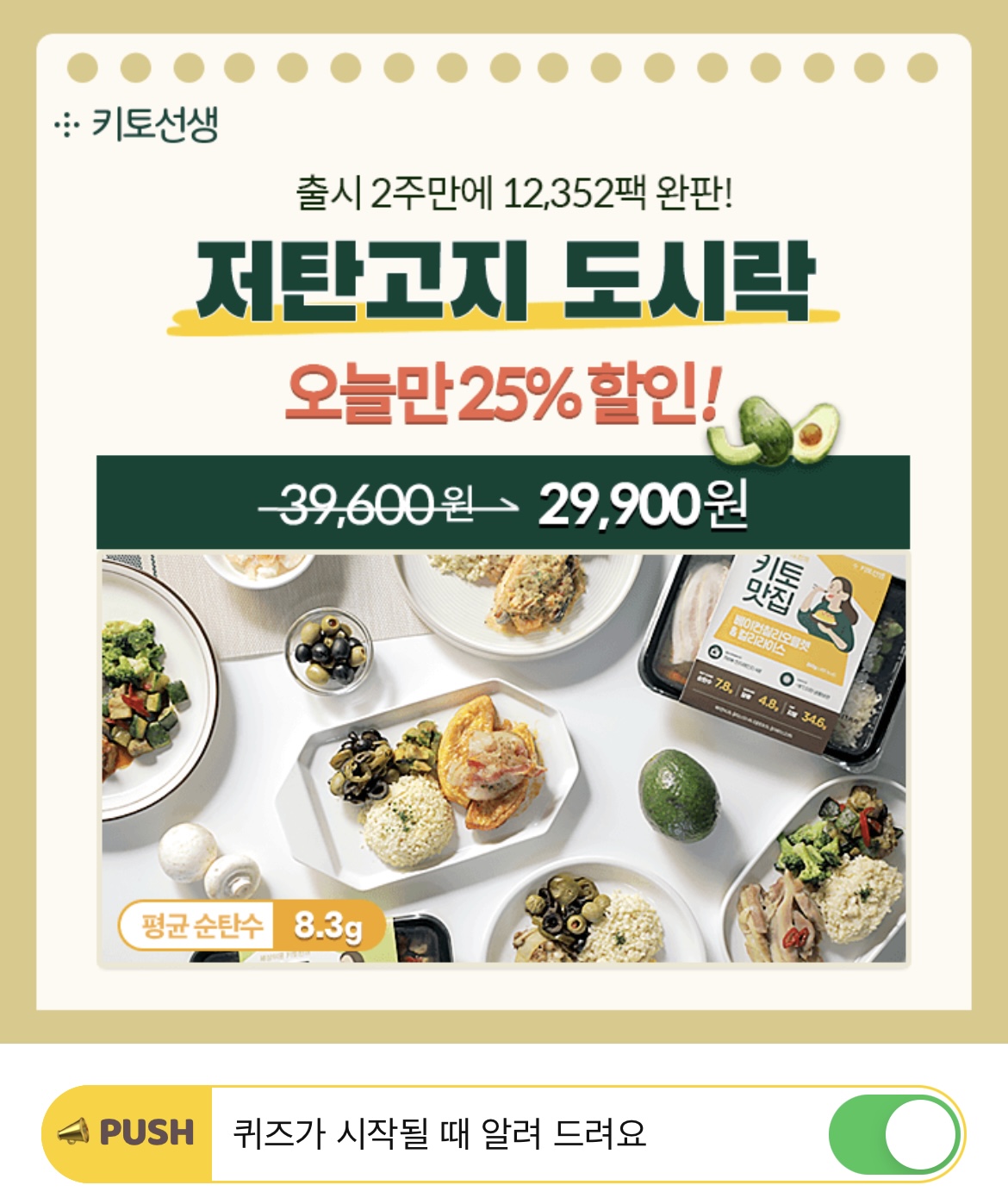 전자레인지에 O분만 데우면 완성되는 간편 키토식, 키토선생 도시락은 저탄고지 식단을 하는 분들의 시간을 크게 아껴줘서 사랑받고 있는데요. O에 들어갈 숫자는 무엇일까요?