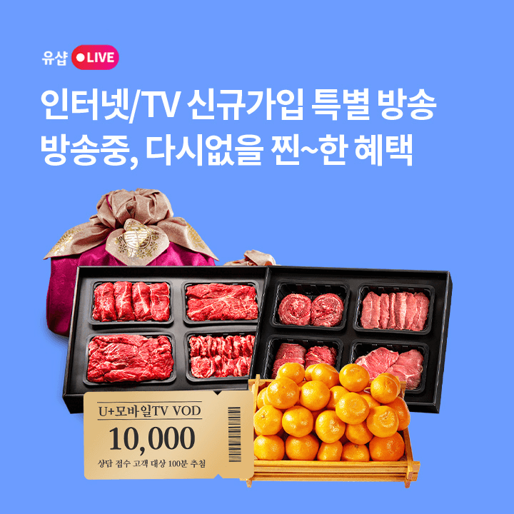 ★혜택으로 똘똘 뭉쳤다 U+ 인터넷/TV 특별 방송★ 방송 중 인터넷/TV 가입 시 명품 한우 세트 당첨 기회가?! 2월 23일 저녁 6시, 실시간 상담으로 속 시원하게 궁금증 해결하자~!