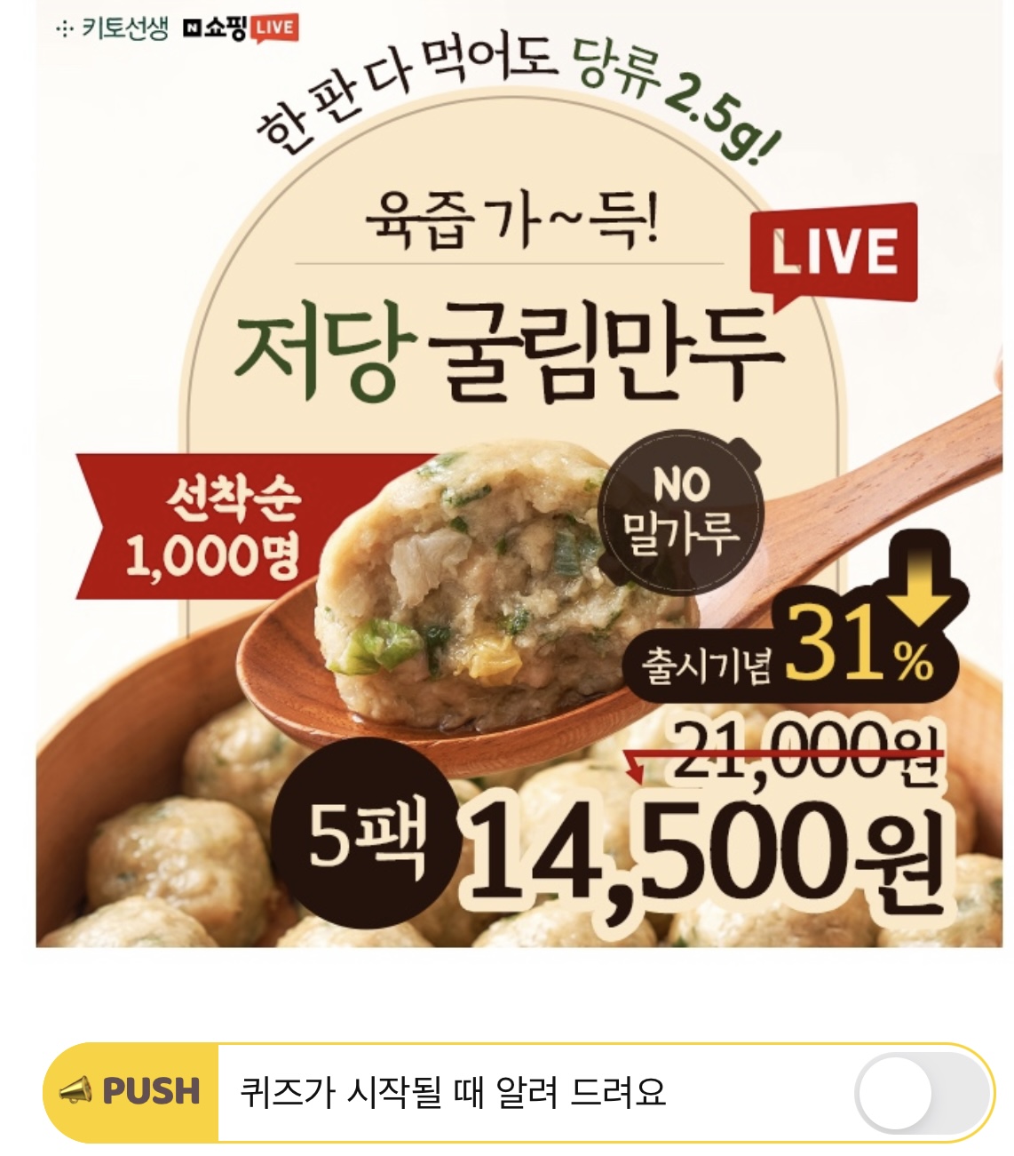 "야식 참고 저당굴림만두 한 팩씩 먹고 있어요 57kg였는데 2주만에 53kg 달성했어요~", "거의 없는 듯한 OOO로 식감도 너무 좋고, 조리도 아주 간편합니다." 이 내용은 키토선생 저당굴림만두 고객 찐 리뷰입니다.