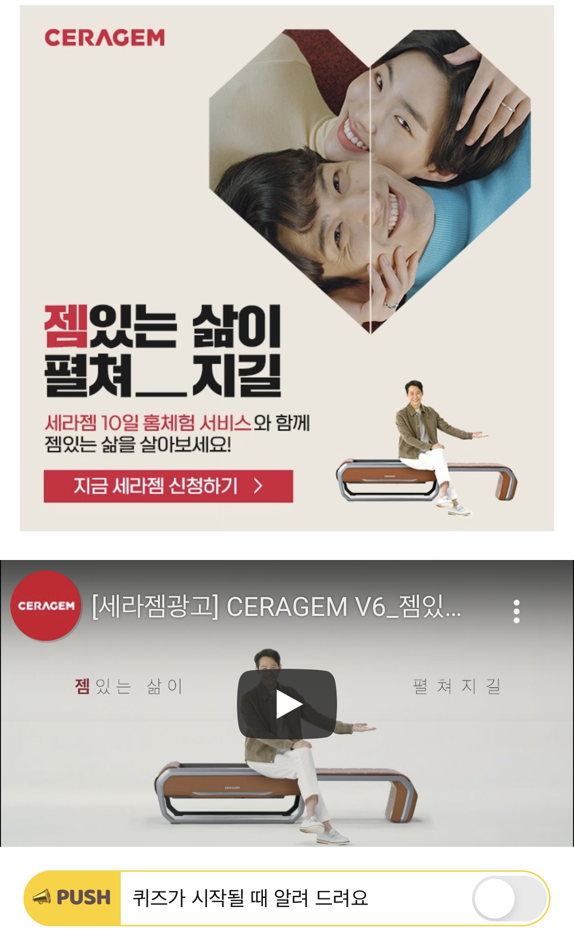 세라젬 V6에는 허리 통증을 유발하는 척추질환인 ○○○탈출증(디스크)의 치료를 목적으로 인체를 견인하는 기능이 새롭게 추가되었습니다. ○○○에 들어갈 단어는 무엇일까요?