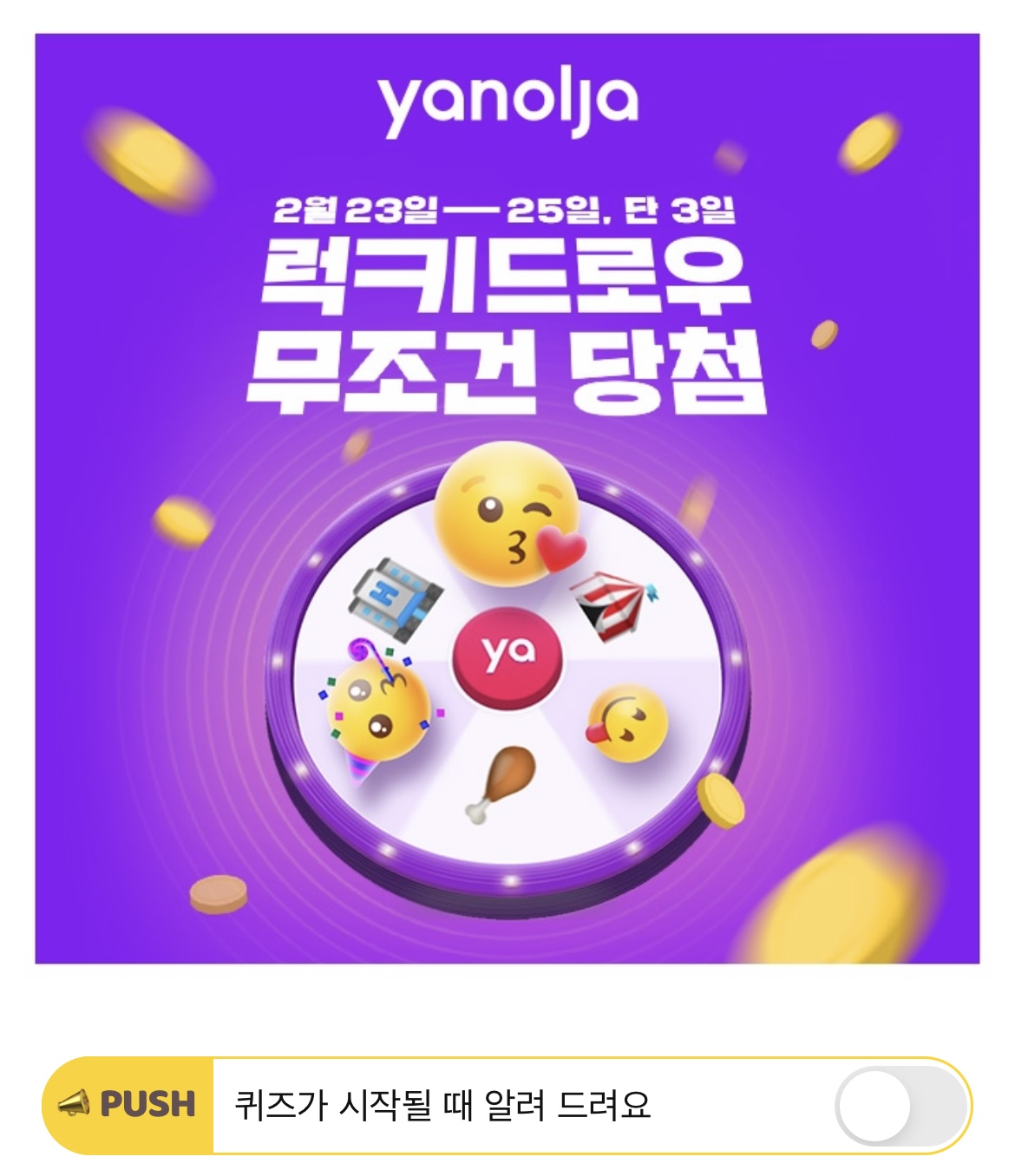 야놀자에서 2월 23일~25일까지 매일 럭키드로우 이벤트가 진행됩니다.
