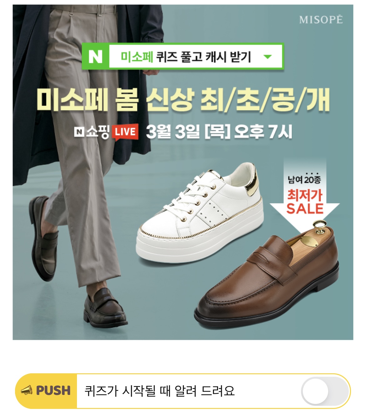 미소페 22 S/S 슈즈 최초공개! OOOO는 미소페 봄 신상 신발을 올해 처음으로 선보이는 주간 행사입니다. OOOO는 무엇일까요? (힌트 : ㅅㅅㅇㅋ)