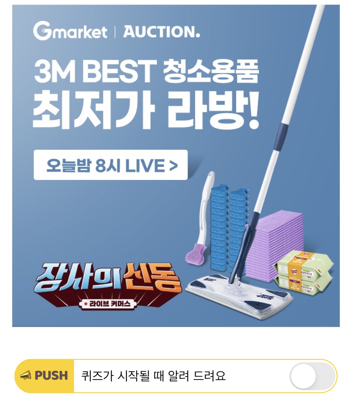 오늘밤 8시, 초특가 예능 라이브방송 <장사의 신동>에서는 3M 인기상품을 최저가에 구매할 수 있고, 다양한 경품까지 받을 수 있다고 합니다. 그렇다면, 구매자 전원에게 드리는 경품혜택 OOOO OOOOO은 무엇일까요?
