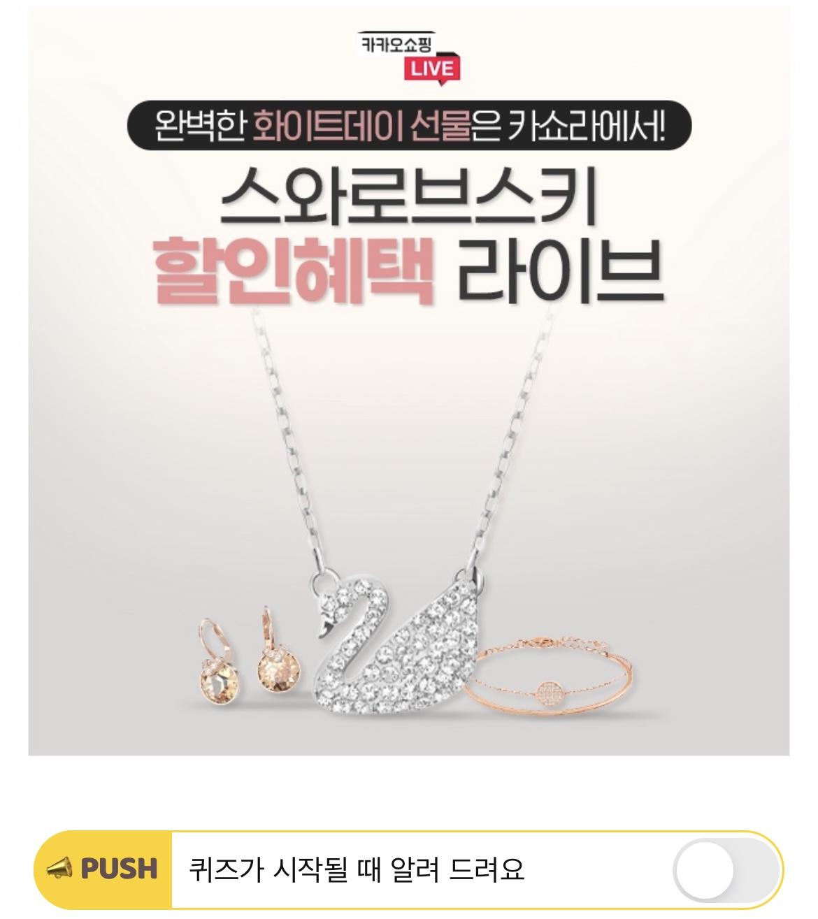 오늘 카쇼라 X 스와로브스키 라이브 진행 중 구매하면, O%즉시할인, 5% 포인트적립, 귀걸이/네일파일 증정 등의 혜택을 누릴 수 있습니다! O에 들어갈 숫자는 무엇일까요?