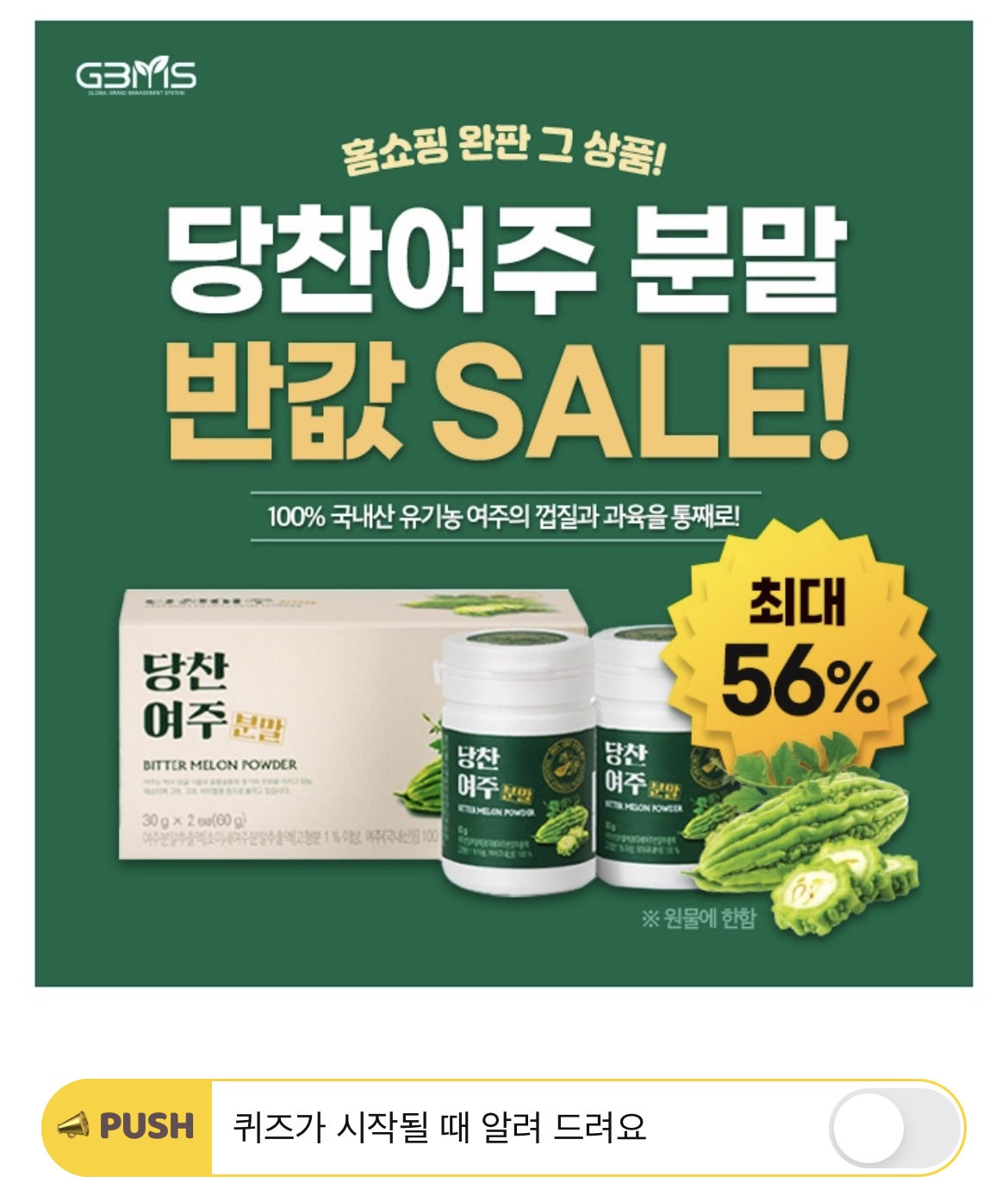 100% 국내산 여주를 자연 그대로 담은 OO OO분말로