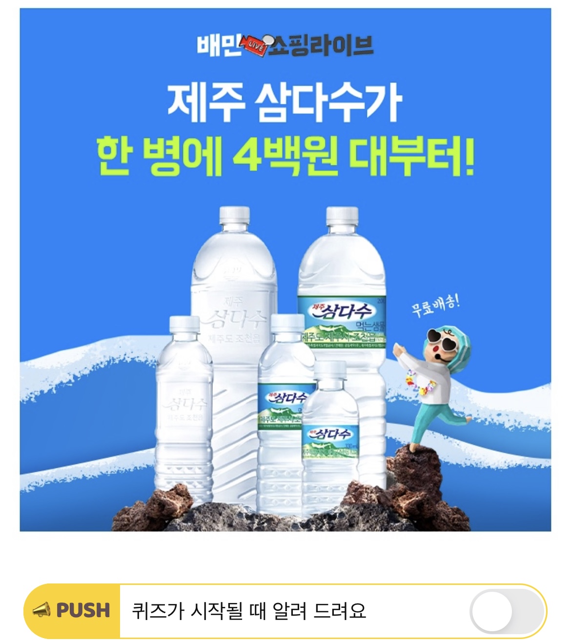 지금 배민쇼핑라이브에서만! 대한민국 1등 생수 삼다수를 최대 OO% 할인된 가격으로 만나볼 수 있습니다. 여기서 OO에 들어갈 숫자는 무엇일까요?