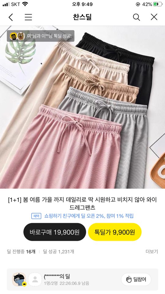 바로 구매를 하면 19900원짜리를 톡 딜이라는 것을 통해 9900원에 판다.