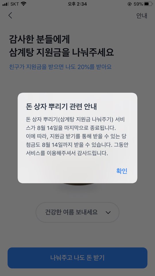 삼계탕 지원금을 드려요